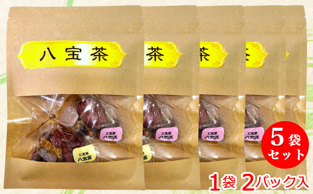 | 容量 | ■内容量: 5袋セット 1袋2パック入り 合計10パック ■八宝茶1パックでティーカップ1杯分 ■原材料:なつめ、菊花、氷砂糖、枸杞の実、竜眼肉、山茱萸、山査子、茶葉 |