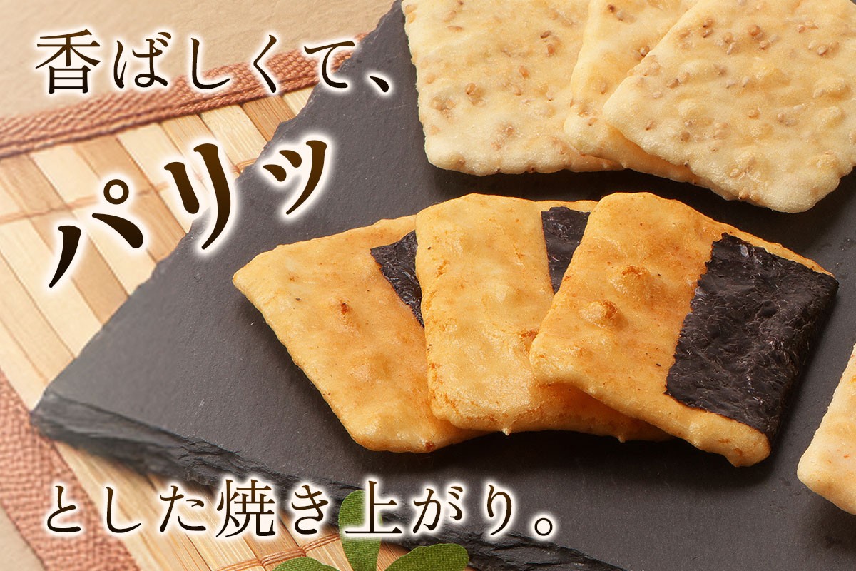 パリッと焼き上げたうす焼きせんべいを、香り高い海苔でひと巻き。
