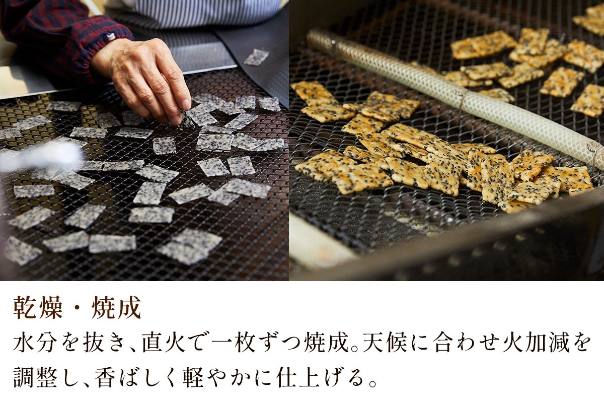 噛むほどに広がる胡麻のコクが、薄焼きならではのパリッとした食感を引き立てます。