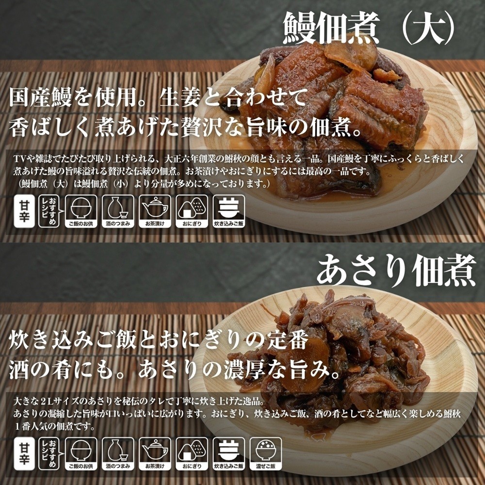 鮒秋 佃煮 8個詰め合わせ 贅沢セット《 鰻佃煮 (大) あさり佃煮…