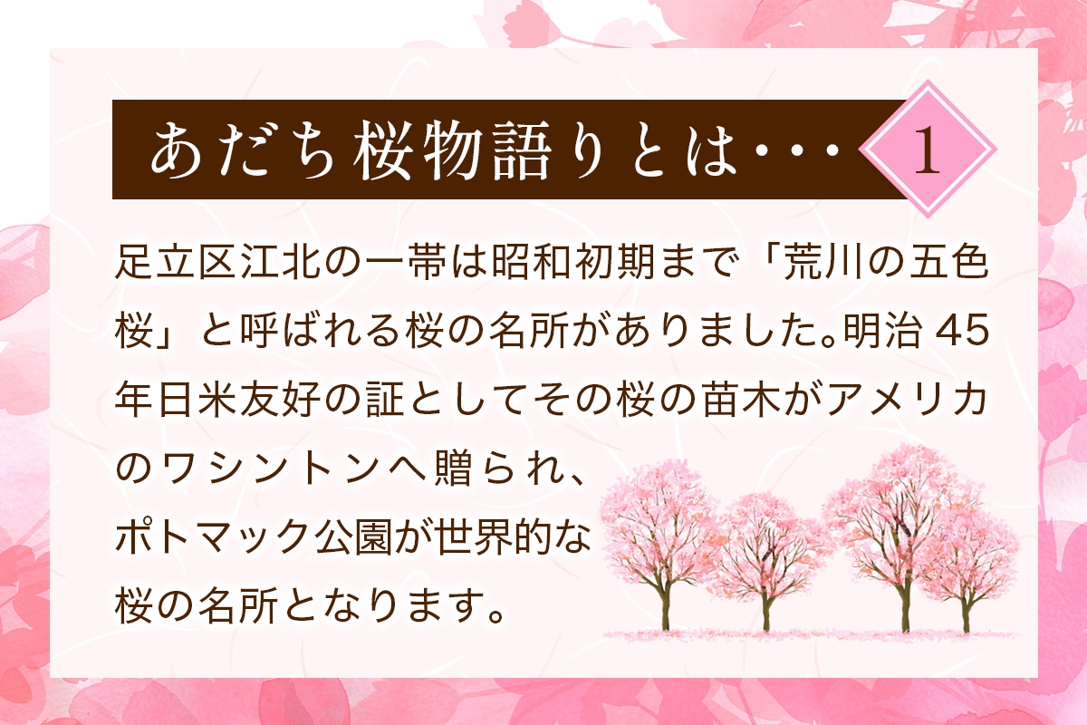 ほかにも、荒川をはじめとした豊かな水辺や、厄除けで有名な西新井大師等に代表される多くの名所旧跡に恵まれた区として発展を続けています。
