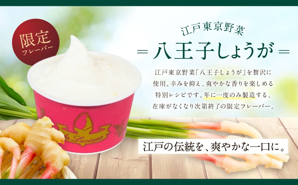 ◆八王子しょうが:牛乳(国内製造)、乳製品、砂糖、ガラクトオリゴ糖液糖、しょうが/乳化剤、安定剤(増粘多糖類)、香料(一部に乳成分を含む)