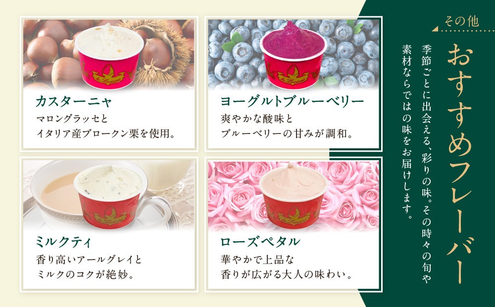 地元のお客様から人気のある、季節ごとの定番ジェラートを6種類詰め合わせてお送りします。