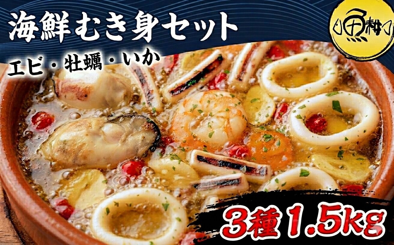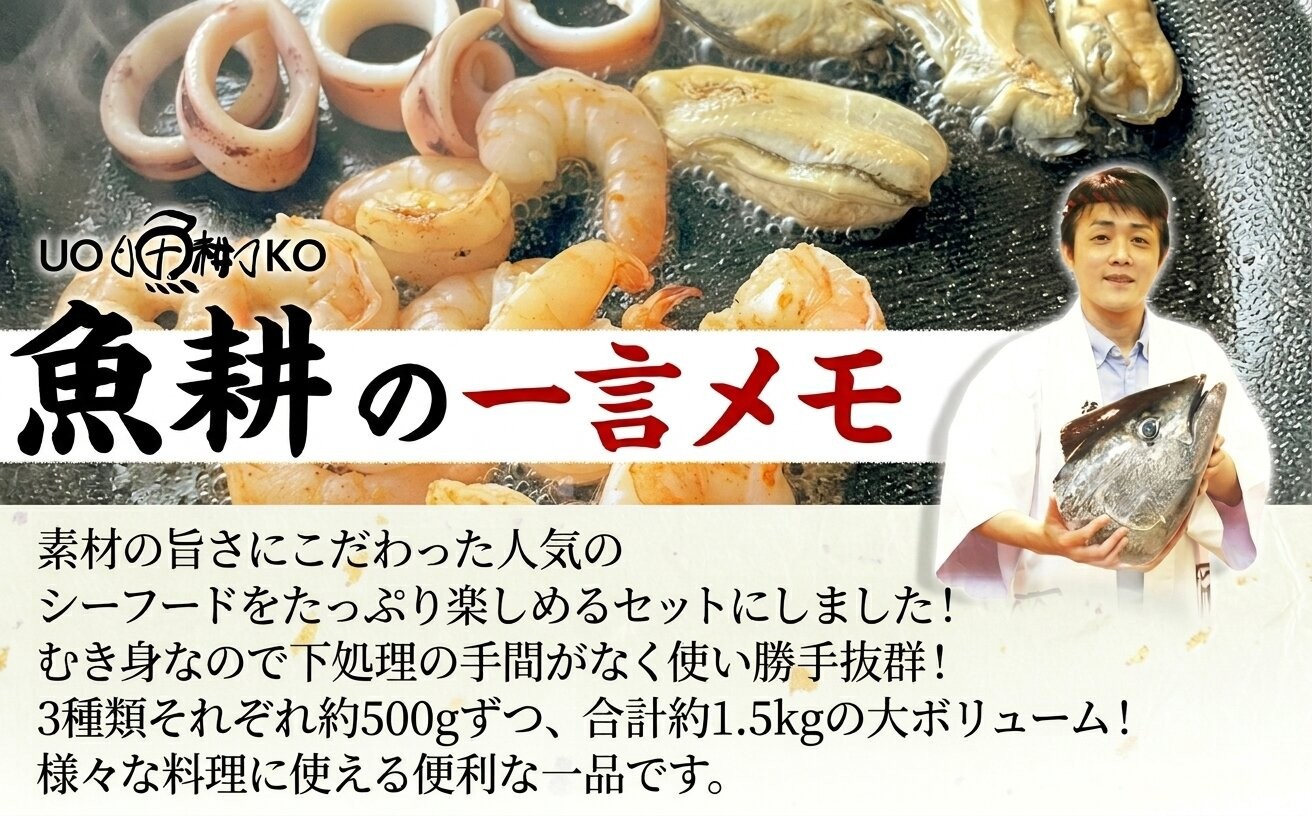 シーフードミックス むき身 3種約1.5kg 牡蠣 むきエビ いか 海鮮 バーベキュー セット BBQセット 海鮮セット 殻なし