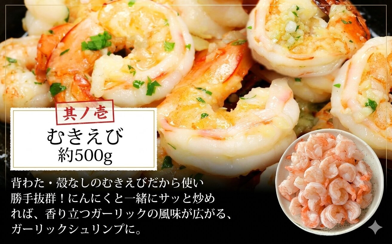 むきエビ・牡蠣・いかの全3種類をセットにしました!