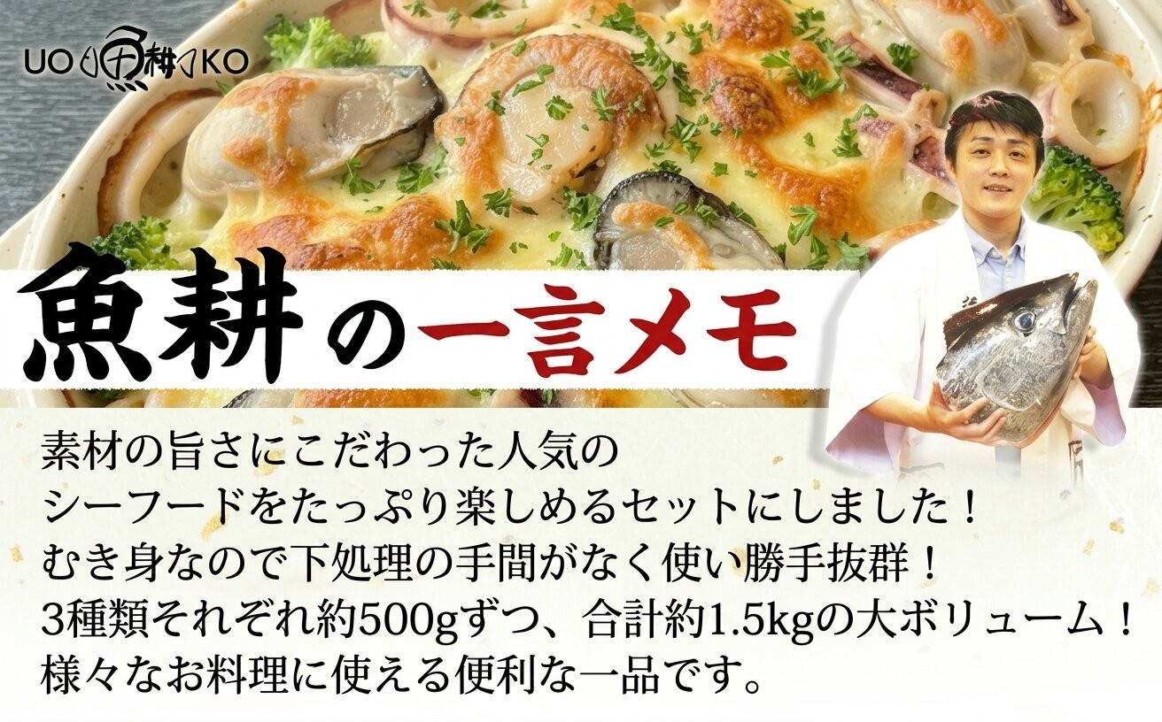 シーフードミックス むき身 3種約1.5kg 牡蠣 ホタテ いか 海鮮 バーベキュー セット BBQセット 海鮮セット 殻なし