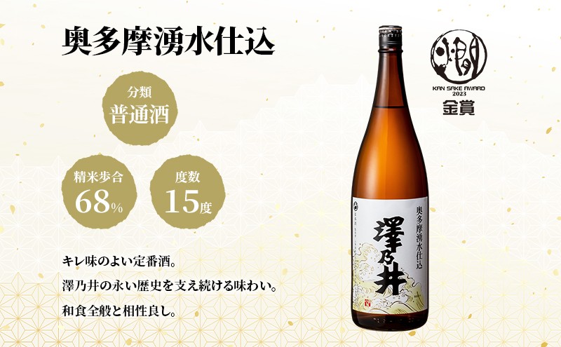 小澤酒造 純米大吟醸・大吟醸・奥多摩湧水仕込み1.8L3本入 日本酒 KuraMasterプレジデント賞 最高賞 受賞 ワイングラスでおいしい日本酒アワード受賞 お酒 セット 芳醇 こだわり 飲み比べ 米麴 澤乃井 地酒 人気 ギフト 贈答 東京都 青梅市 [№5714-0188]