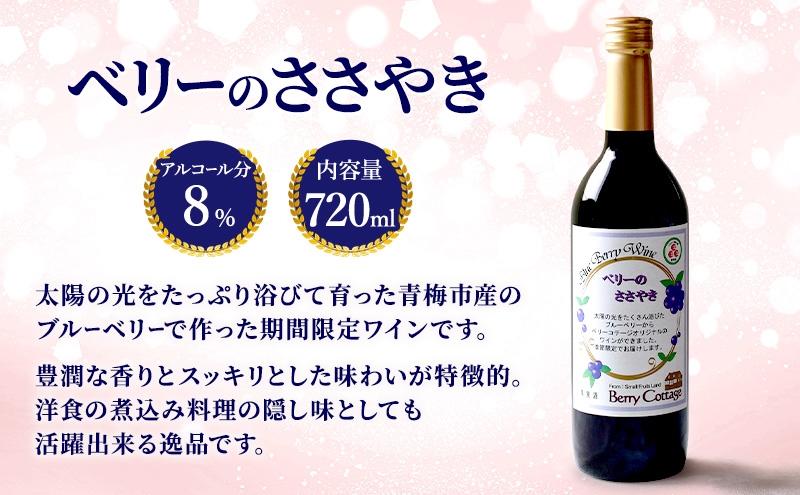 ブルーベリーワイン 「ベリーのささやき」 2019年産 ビンテージ品 お酒 日本ワイン フルーツワイン 果実酒 アルコール ブルーベリー 洋食 東京都 青梅市 [№5714-0326]