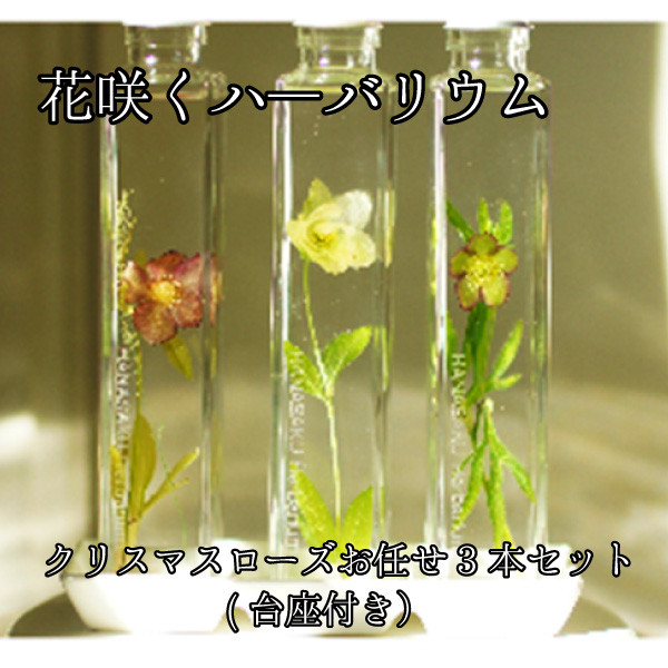 認定講習の指導者がお作りした、一点もののクリスマスローズのハ―バリウム3本セットとなります。