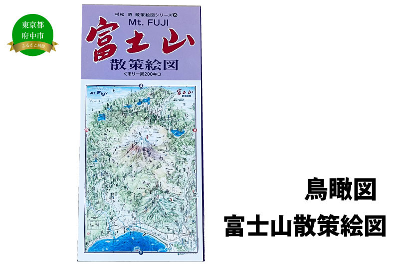 名峰富士山とその周辺の名所など、空から一目でわかるように描いた俯瞰絵図になります。
