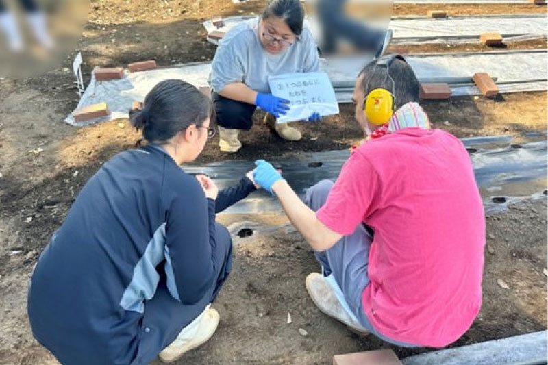 コラボレーション商品に使用するジャムの原材料のダイコンは、東京都立農業高等学校 定時制課程食品化学科で栽培しました。種まきと収穫は、福祉施設の利用者さんと共に行いました。