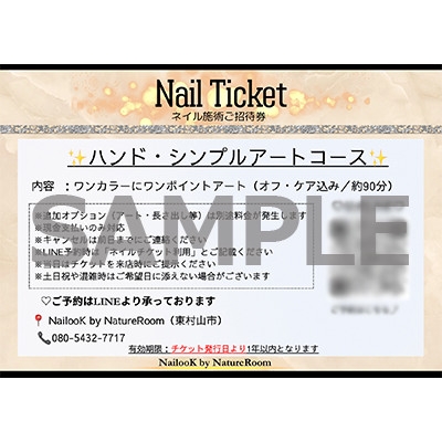 ※ご予約時は「ネイルチケット利用」の旨、必ずお伝えください。