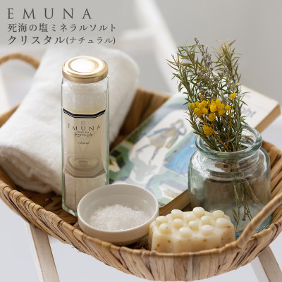 エムナーデッドシーミネラルソルト クリスタルは、そんな死海の海水を天日乾燥し結晶化させた天然塩で、高級感のある大粒(粒子径1.7~4.0mm)のバスソルトです。