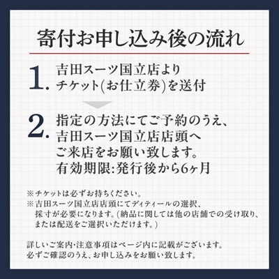 ※寄付お申し込み受付後、吉田スーツ国立店よりチケット(お仕立券)を送付いたします。