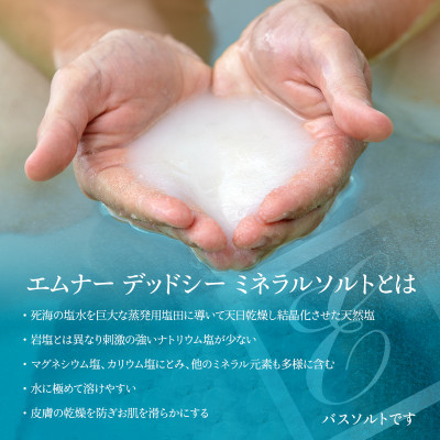 エムナーデッドシーミネラルソルト クリスタルは、そんな死海の海水を天日乾燥し結晶化させた天然塩で、高級感のある大粒(粒子径1.7~4.0mm)のバスソルトです。