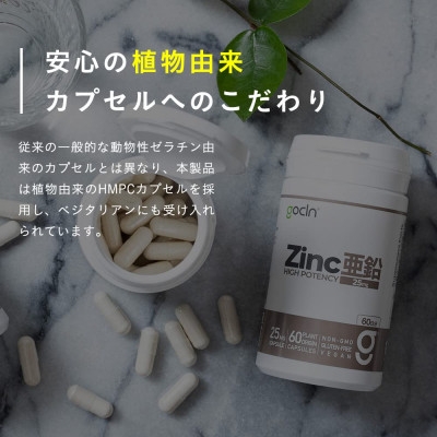 GoCLN 亜鉛サプリ 自然由来原料100% 25mg 60カプセル(60日分)【1603301】