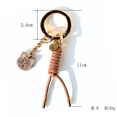 <ねこチャーム> トラ猫 ゴールドカラー 本革キーホルダー【1692523】
