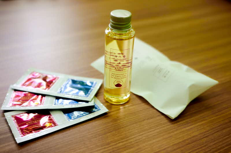 『神代椿-金-』と脱色・脱臭を施した高精製オイル『神代椿-銀-』の両方の椿油をお試しいただけるトライアルサイズです。