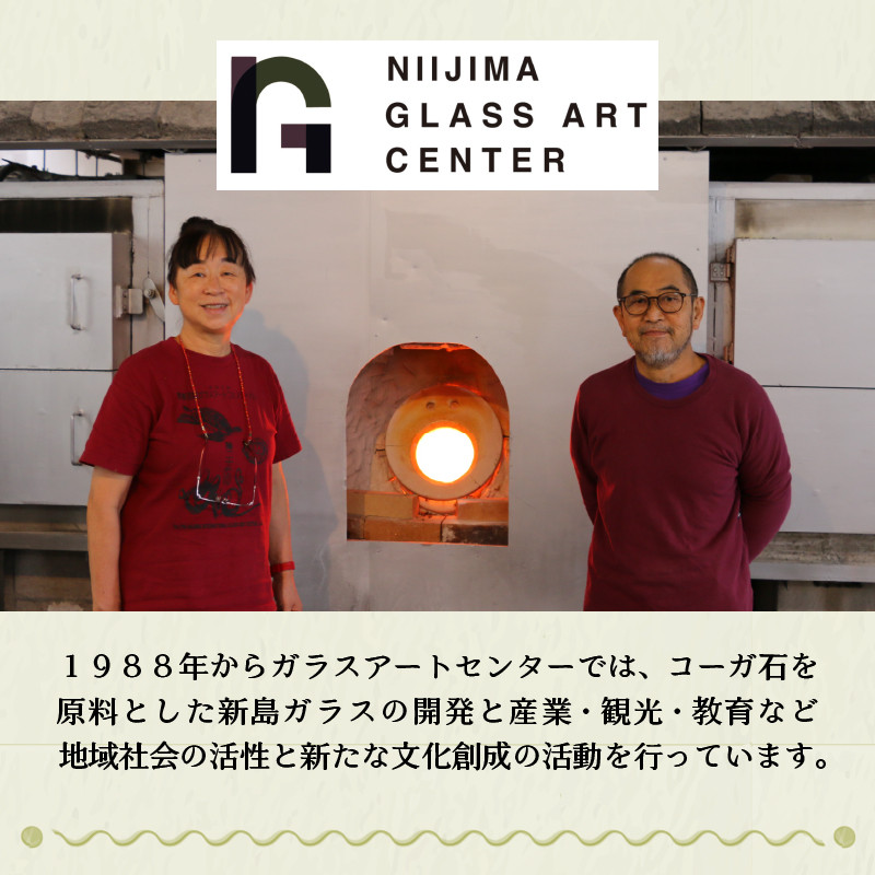 物語性豊かな唯一無二の新島ガラスの風合いと形をお楽しみ下さい。「新島ガラス」は特産の火山石・コーガ石の砂を100%使用溶融してできる、オリーブ色の天然の色ガラスです。