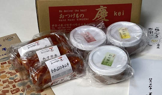神奈川県を代表する梅の生産地、小田原曽我梅林の「昇珠園」より昔ながらの製法で天然の塩(岩塩)のみで一つ一つ丁寧に仕上げた手作りの完熟梅干し3種詰合せと、キムチとして初めて「かながわの名産100選」に認定された「おつけもの慶」の特選キムチ三種をセットにいたしました。