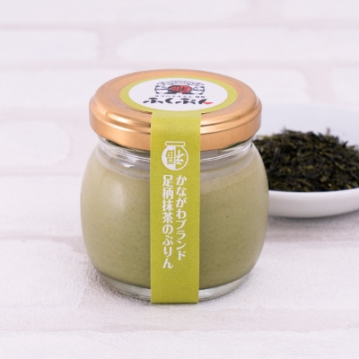<足柄抹茶のぷりん> 深い香りとまろやかな渋みが調和する、上品な味わいの抹茶ぷりん。茶葉が持つ芳醇な風味が口の中にやさしく広がります。