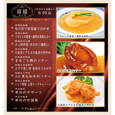横浜中華街 富泰楼 富億コース(10品) ペア食事券【1683053】
