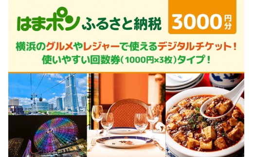 はまポンふるさと納税チケット3000円分(1000円×3枚)