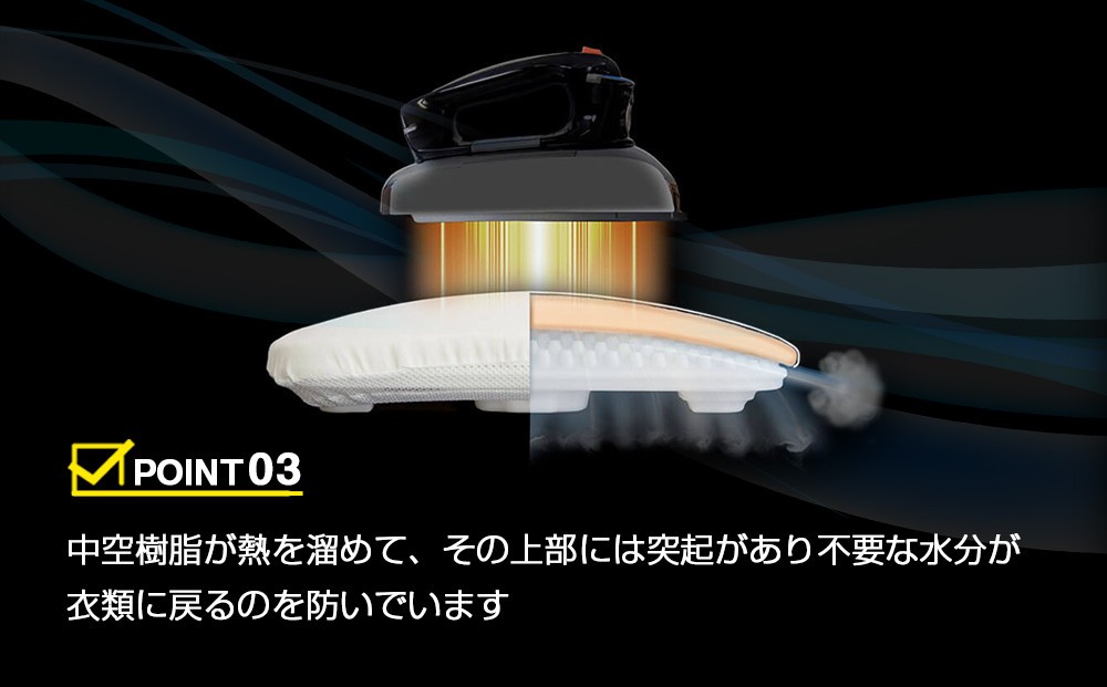内部構造にも特許取得済みの大きな特徴があります。外側から、丈夫なカバー・分厚い15mmのフェルト・凹凸のあるプラスチックのボード層という三層構造となっています。フェルトがしっかりと熱を保持しますが、突起ボードの隙間から余分な蒸気は抜けていきます。真下方向に蒸気が直接逃げることがないので、やけどの心配もありません。