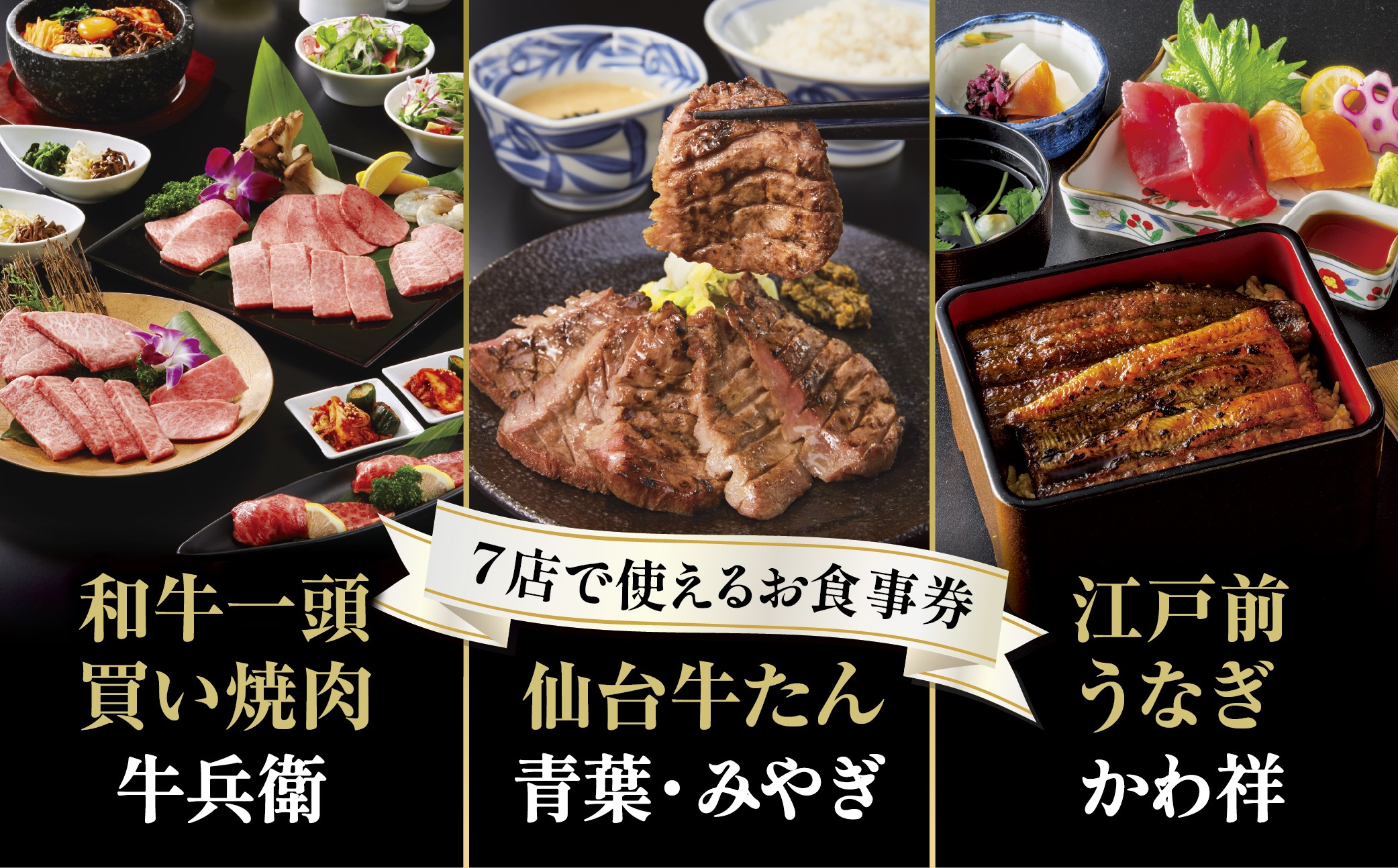 下記7店舗で使える共通お食事券になります。