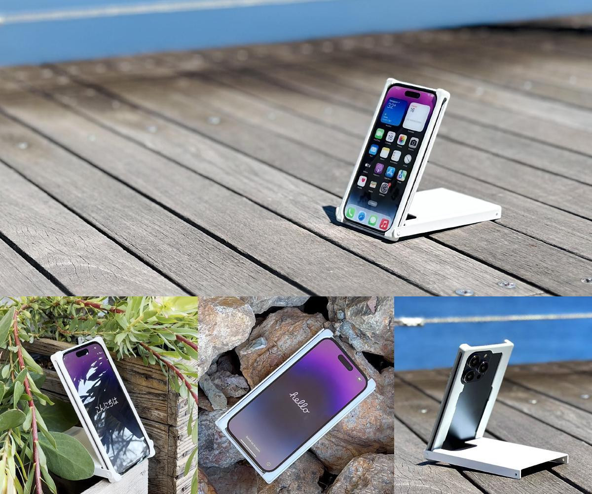iPhoneを覆うケースと自由に回転・移動するカバーにより、iPhoneをヌンチャクのように振り回すことができる今までにないiPhoneケースです。また、画面保護や自立スタンドとしての実用的機能も兼ね備えた多機能ケースです。