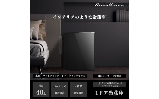 静音ペルチェ式×ブラックガラス扉で魅せるコンパクト冷蔵庫! 40Lペルチェ式冷蔵庫ブラックガラス HH-RP2140GB | おしゃれ キッチン家電 白物家電 インテリア 静音 大容量 日用品|人気 おすすめ 送料無料|神奈川県 横浜市