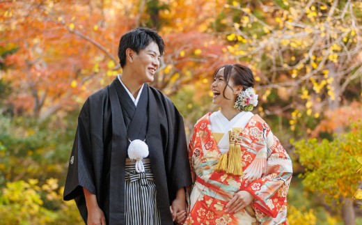 和装の華やかさと自然の彩りが見事に調和し、その瞬間ごとに異なる雰囲気の写真を楽しめます。
