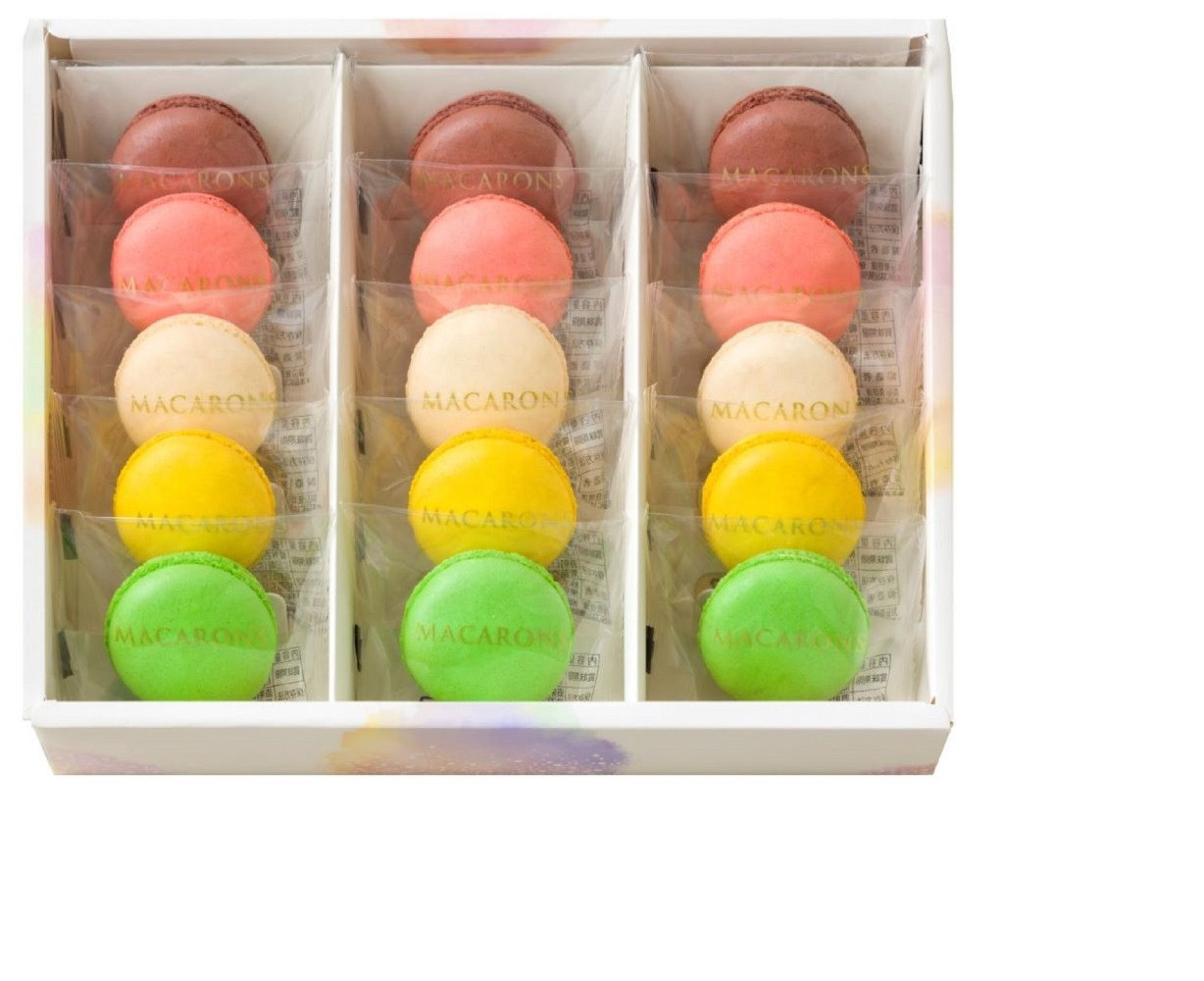 | 容量 | マカロン15個(フランボワーズ、ヴァニーユ、シトロン、ショコラ、ピスタチオ×各3個) |