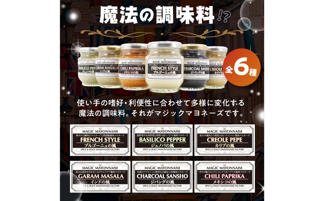 チョイスPayポイントと交換できる品 川崎市宮前区の自社工場にて製造 スパイス&ピースのマジックマヨネーズ6本セット