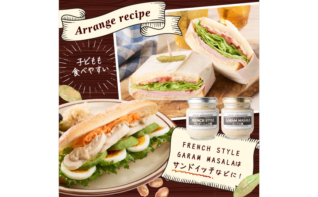 川崎市宮前区の自社工場にて製造。昔ながらのフレンチマヨネーズのレシピに、世界中から選りすぐったスパイス&香辛料を加え、様々な“美味しさ”を表現したマヨネーズです。