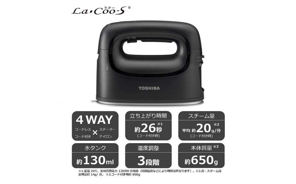 ■コードレスでもコード付きでも、スチーマー・アイロンとしても使える――4way