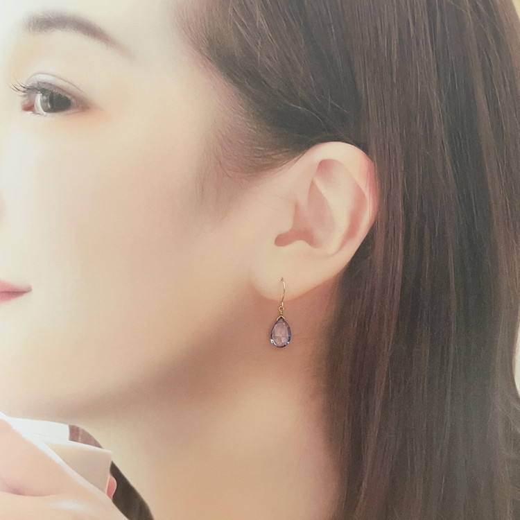 溢れる透明感と幻想的な光が魅力のミスティックトパーズをシンプルな一粒ピアスに仕立てました。