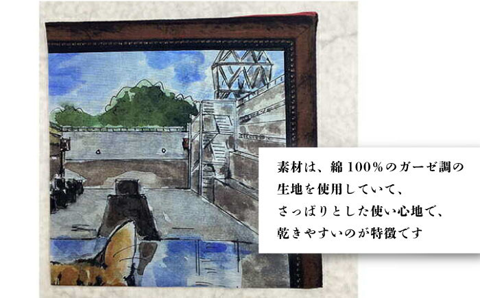画家:大塚研一朗氏が描いた横須賀ー浦賀の渡し ハンカチーフ …