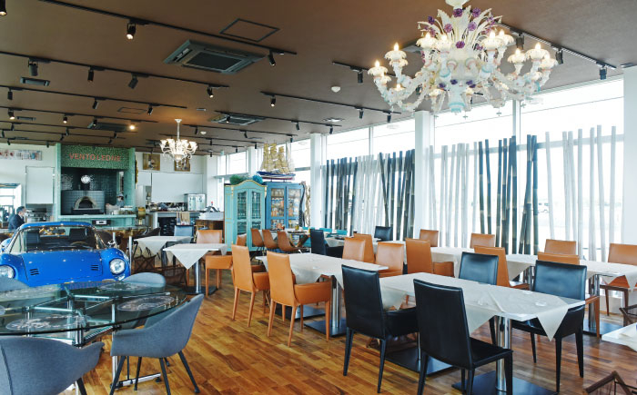 神奈川県横須賀市の西海岸に位置し、「食べる・泊まる・遊ぶ・体験する・お土産を買う」など、施設やコンテンツが充実した大人も子供も楽しめるエンターテイメントパーク「長井海の手公園 ソレイユの丘」内にあるイタリアンレストランです。