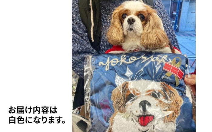 大切なペットのお写真をオリジナルスカジャンに 【Mサイズ】【数量限定】 横振り刺繍スカジャン ペット白 横須賀 衣類 ジャケット 服飾 ペット 刺繍 オリジナル オーダー ファッション 【ドブ板コーバスタジオ】 [AKAI012-2]