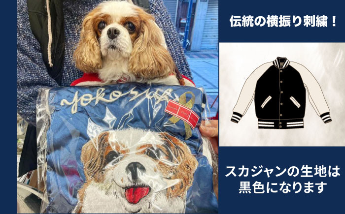 大切なペットのお写真をオリジナルスカジャンに 【数量限定5セット】 横振り刺繍スカジャン ペット黒 横須賀 衣類 ジャケット 服飾 ペット 刺繍 オリジナル オーダー ファッション【ドブ板コーバスタジオ】 [AKAI013]