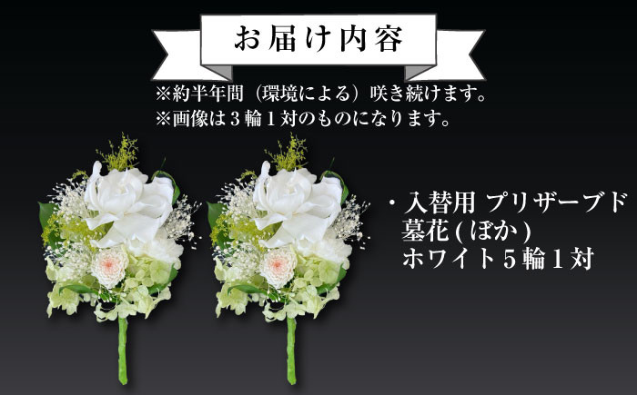 入替用 プリザーブド 墓花 (ぼか) ホワイト 5輪 1対【プリフ…