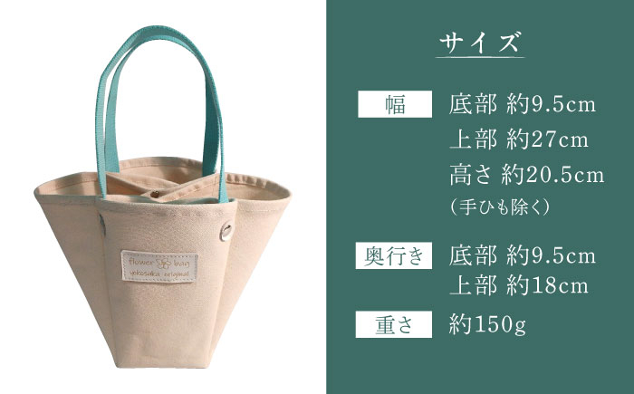 | 容量 | 【手ひもの色】 赤 黄色 緑 水色 茶色 以上よりご希望の色をお選びいただき、 【申し込みに関する備考】欄にご記入ください。 【サイズ】 ・幅 底部 約9.5cm 上部 約27cm 高さ 約20.5cm(手ひも除く) ・奥行き 底部 約9.5cm 上部 約18cm ・重さ 約150g 【製作地】 横須賀市(made by SIDIRTA) 【素材】 ・本体 帆布、綿100%(一部牛革使用) ・手ひも アクリル ・底板 発砲ポリエチレン ※天然素材のため、一点一点、色や質感に多少の違いが生じたり、原皮のキズやシワ等があることがございます。 ※水に濡れたり、摩擦などで、色落ちや型崩れがおこることがありますので、ご注意ください。 ※破損や品質上の問題がある場合を除き、一度、お送りした商品の返品・交換はできません。 【加工地】 神奈川県横須賀市 |