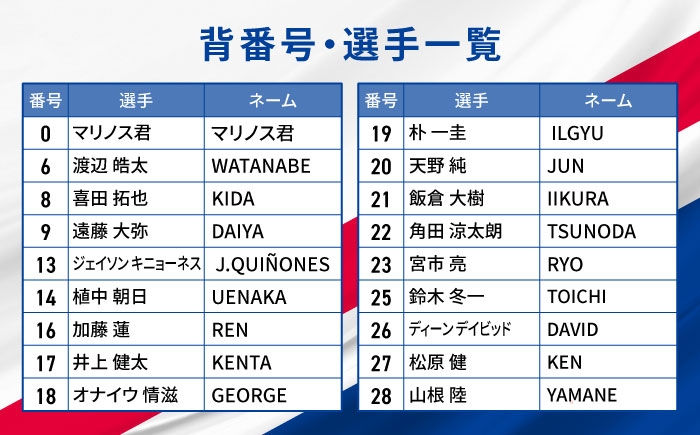 「背番号・選手一覧表」を元に備考欄にご希望の背番号をご記入ください。