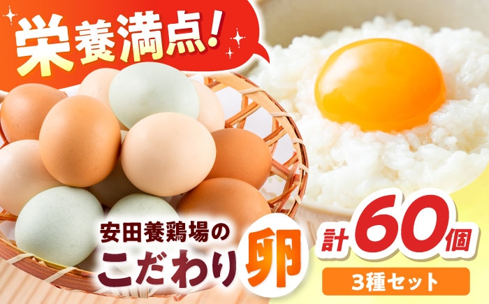 安田養鶏場の卵 3種セット しおさい アトムくん タフラン 60個…
