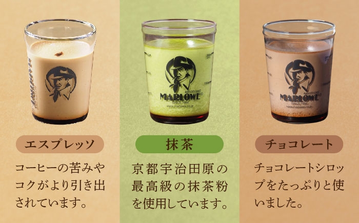 チョコレートシロップをたっぷりと使い、コクと香りをだすためにココアパウダーをプラスしています。