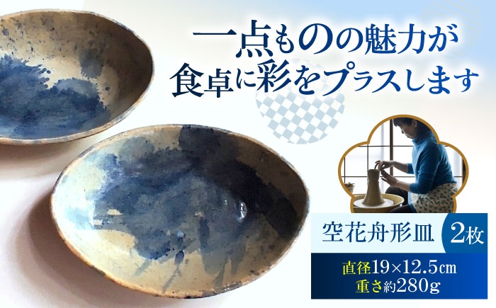 偶然の重なりで生まれたブルーの舟形皿 空花舟形皿2枚セット 陶器 うつわ お皿【うつわの行方】 [AKGG005]