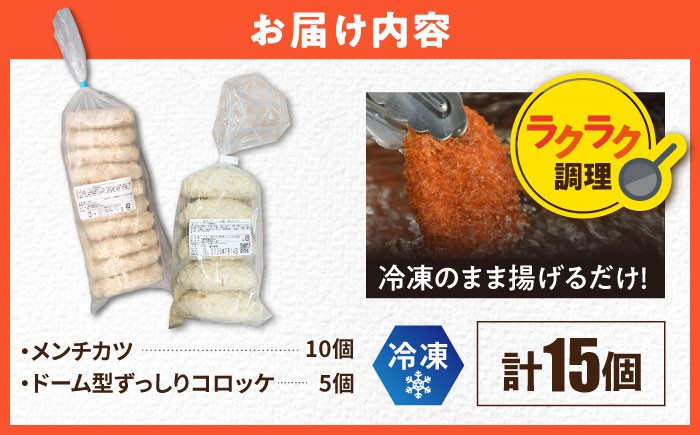 卵不使用!子どもにも安心して食べてもらいたい メンチカツ10個 ドーム型ずっしりコロッケ5個 計15個 【三富屋商事株式会社】 [AKFJ117]
