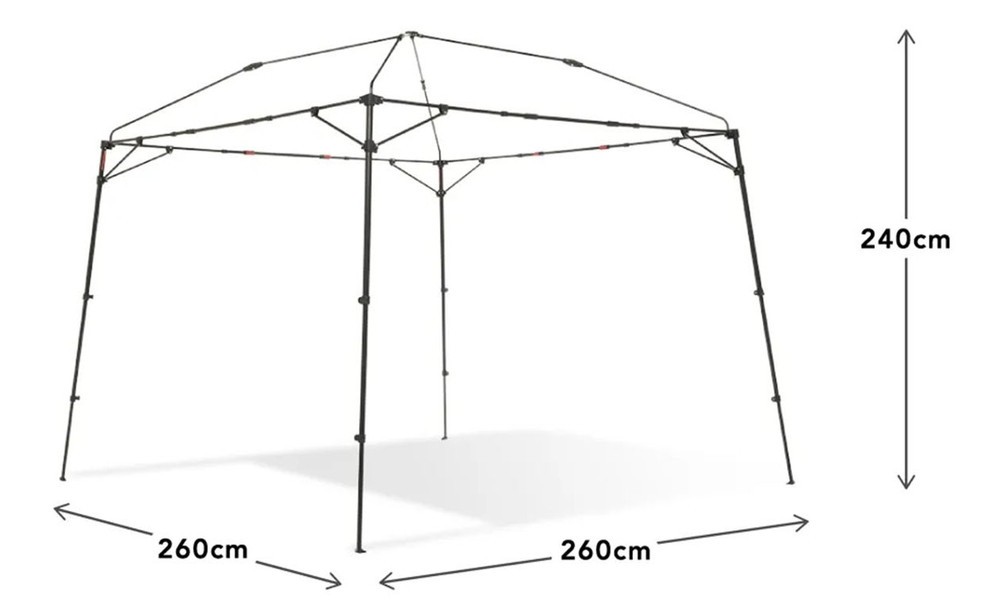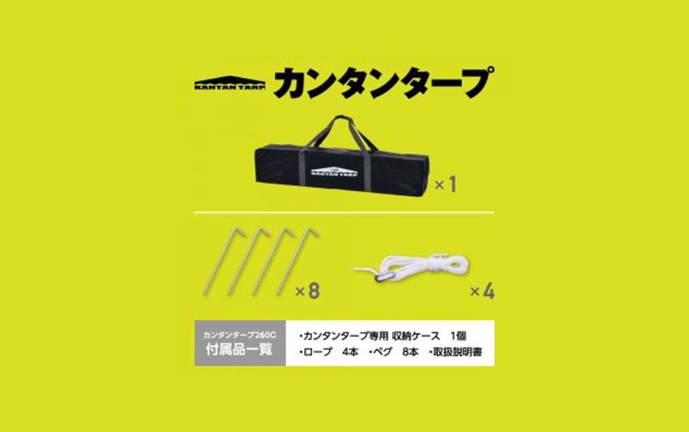 | 容量 | ・サイズ 組立時:W260×D260×240cm / 軒下:180/240cm ・重量:(約)14kg ・素材:天幕:TC / フレーム:スチール ・天幕カラー:SAFARI(サファリ) ・フレームカラー:マットブラック ・付属品 :ロープ×4本 / ペグ×8本 / 収納ケース×1個 |