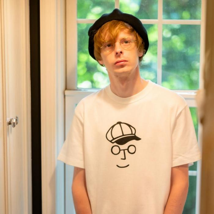 キャスケット帽子をかぶっているデザインのイラストTシャツ。